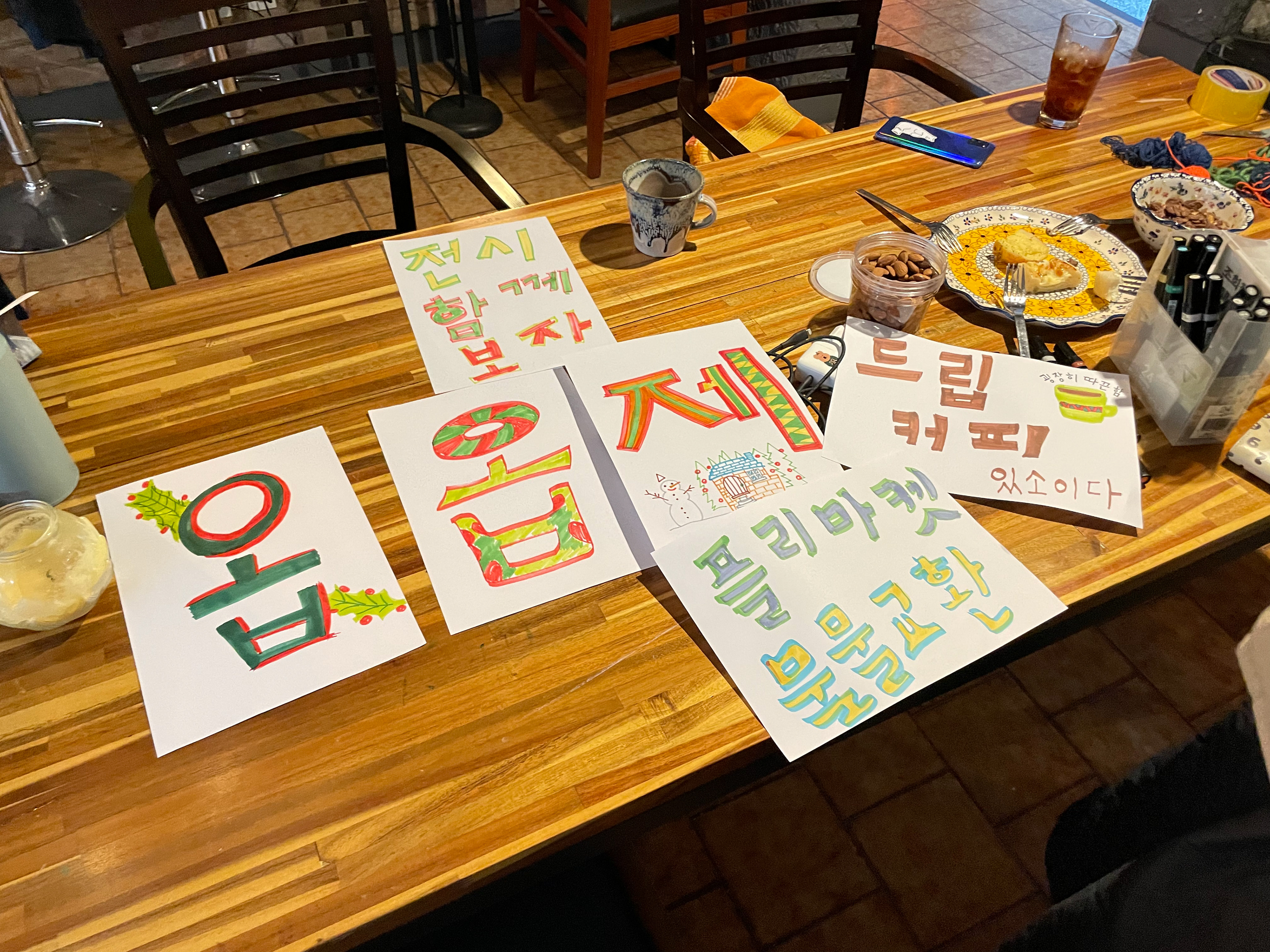 2024.12.20(금) 바움아트스페이스에서 진행된 제2회 옵옵제. 겨울 야외에 놓인 의자를 실로 엮는 <의자땋기>, 직접 만든 뱅쇼잼으로 까나페를 만들어 먹는 <뱅쇼와 치즈와 빵>, 그리고 <물물교환>도 함께 진행되었습니다.